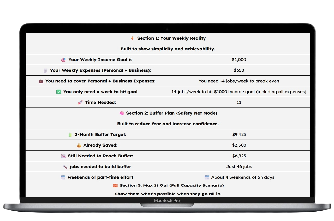 Plan your week based on your life not someone else’s schedule. Use this to map your availability, priorities, and non-negotiables so you can build income around your real life.