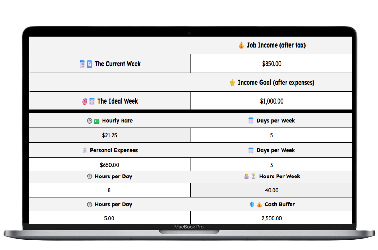 Design your dream week based on your goals, lifestyle, and availability. Perfect if you’re planning a business, side hustle, or want more balance.